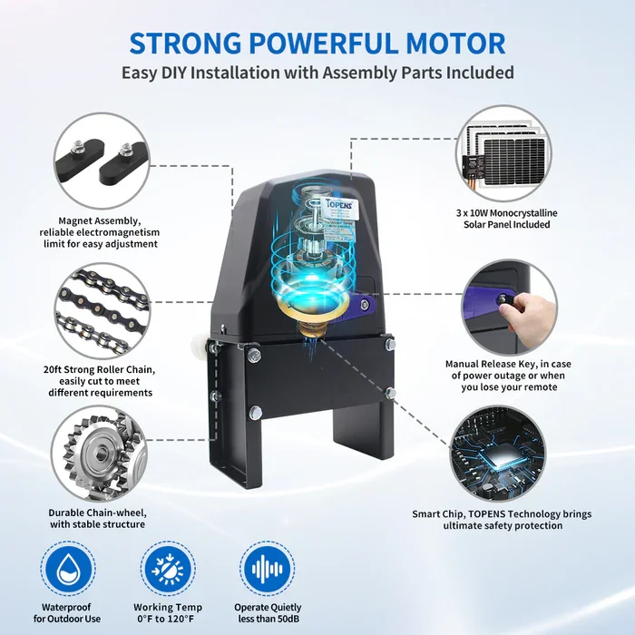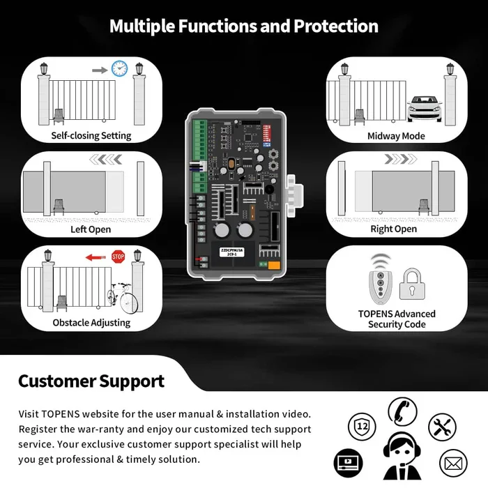 Safe to Use -TOPENS M12 remote control transmitter is a 4-button wireless controller and works with all the TOPENS gate openers. Simply press the button to enjoy instant access to your property. The advanced TOPENS security code technology keeps the gate opener system safe. Small & easy to take wherever you are. The remote transmitter is well built with a durable metal frame for long-lasting performance.